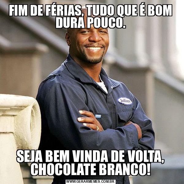 FIM DE FÉRIAS, TUDO QUE É BOM DURA POUCO. SEJA BEM VINDA DE VOLTA, CHOCOLATE BRANCO!