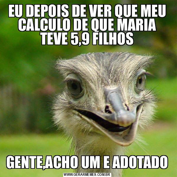 EU DEPOIS DE VER QUE MEU CALCULO DE QUE MARIA TEVE 5,9 FILHOS GENTE,ACHO UM E ADOTADO