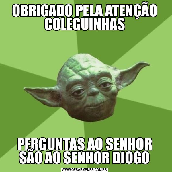 OBRIGADO PELA ATENÇÃO COLEGUINHAS PERGUNTAS AO SENHOR SÃO AO SENHOR DIOGO
