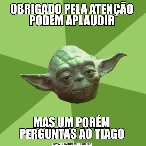 OBRIGADO PELA ATENÇÃO PODEM APLAUDIR MAS UM PORÉM PERGUNTAS AO TIAGO
