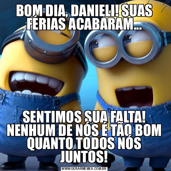 BOM DIA, DANIELI! SUAS FÉRIAS ACABARAM... SENTIMOS SUA FALTA! NENHUM DE NÓS É TÃO BOM QUANTO TODOS NÓS JUNTOS!