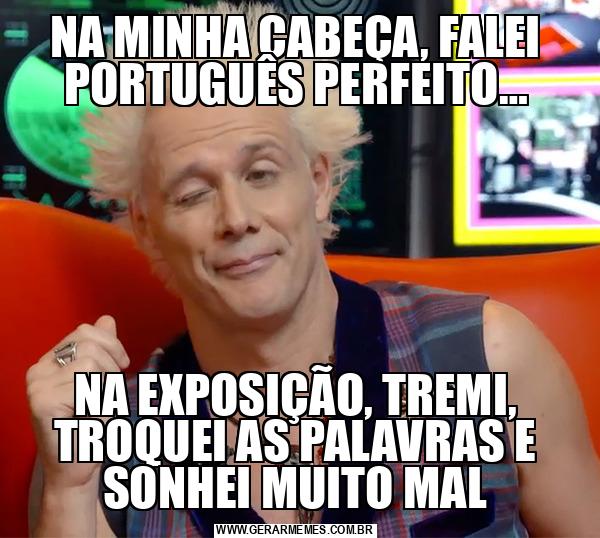 NA MINHA CABEÇA, FALEI PORTUGUÊS PERFEITO… NA EXPOSIÇÃO, TREMI, TROQUEI AS PALAVRAS E SONHEI MUITO MAL