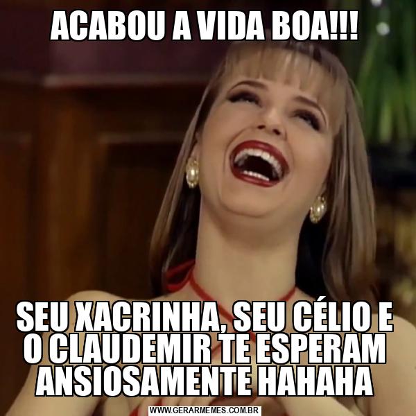 ACABOU A VIDA BOA!!! SEU XACRINHA, SEU CÉLIO E O CLAUDEMIR TE ESPERAM ANSIOSAMENTE HAHAHA