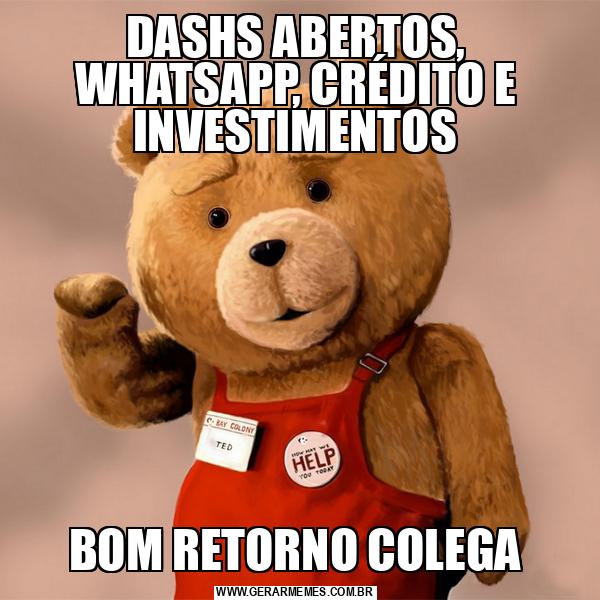 DASHS ABERTOS, WHATSAPP, CRÉDITO E INVESTIMENTOS BOM RETORNO COLEGA