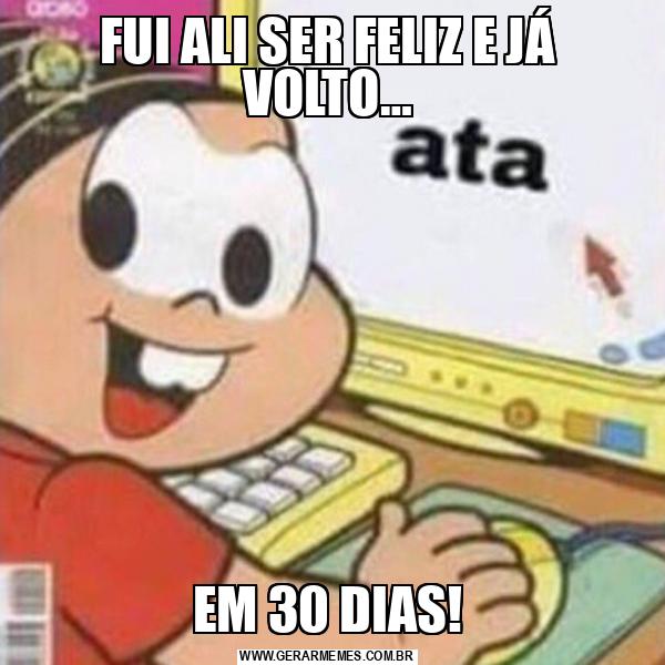 FUI ALI SER FELIZ E JÁ VOLTO… EM 30 DIAS!