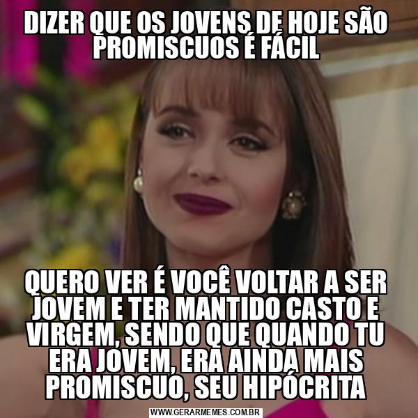 DIZER QUE OS JOVENS DE HOJE SÃO PROMISCUOS É FÁCIL QUERO VER É VOCÊ VOLTAR A SER JOVEM E TER MANTIDO CASTO E VIRGEM, SENDO QUE QUANDO TU ERA JOVEM, ERA AINDA MAIS PROMISCUO, SEU HIPÓCRITA