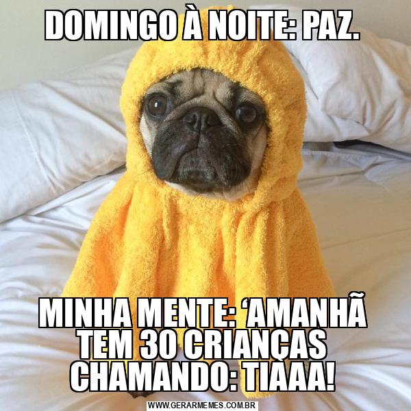 DOMINGO À NOITE: PAZ. MINHA MENTE: ‘AMANHÃ TEM 30 CRIANÇAS CHAMANDO: TIAAA!