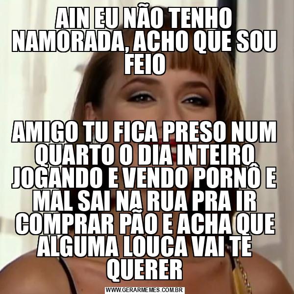 AIN EU NÃO TENHO NAMORADA, ACHO QUE SOU FEIO AMIGO TU FICA PRESO NUM QUARTO O DIA INTEIRO JOGANDO E VENDO PORNÔ E MAL SAI NA RUA PRA IR COMPRAR PÃO E ACHA QUE ALGUMA LOUCA VAI TE QUERER