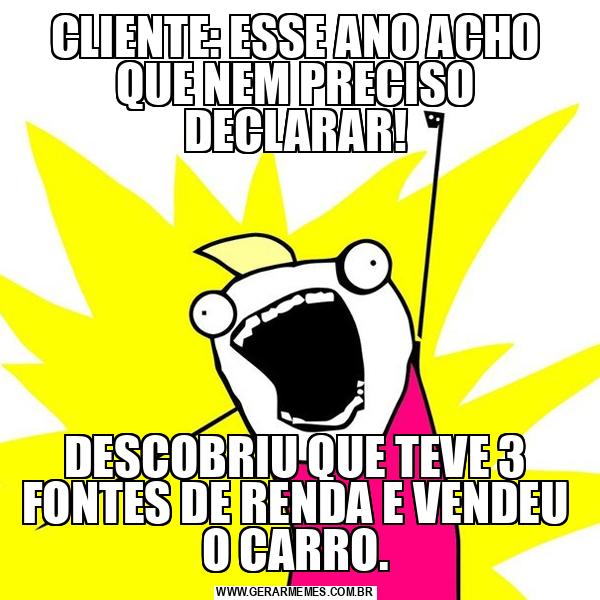 CLIENTE: ESSE ANO ACHO QUE NEM PRECISO DECLARAR! DESCOBRIU QUE TEVE 3 FONTES DE RENDA E VENDEU O CARRO.