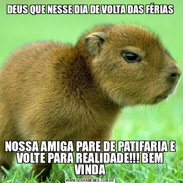 DEUS QUE NESSE DIA DE VOLTA DAS FÉRIAS NOSSA AMIGA PARE DE PATIFARIA E VOLTE PARA REALIDADE!!! BEM VINDA