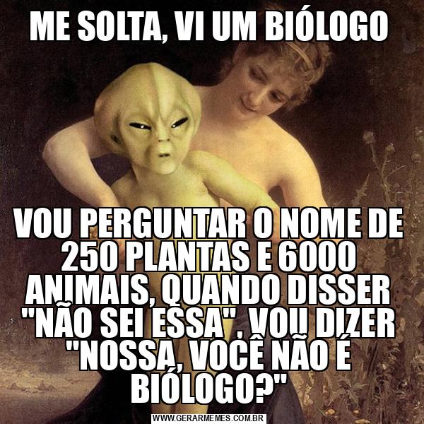 ME SOLTA, VI UM BIÓLOGO VOU PERGUNTAR O NOME DE 250 PLANTAS E 6000 ANIMAIS, QUANDO DISSER "NÃO SEI ESSA", VOU DIZER "NOSSA, VOCÊ NÃO É BIÓLOGO?"