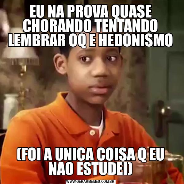 EU NA PROVA QUASE CHORANDO TENTANDO LEMBRAR OQ E HEDONISMO (FOI A UNICA COISA Q EU NAO ESTUDEI)