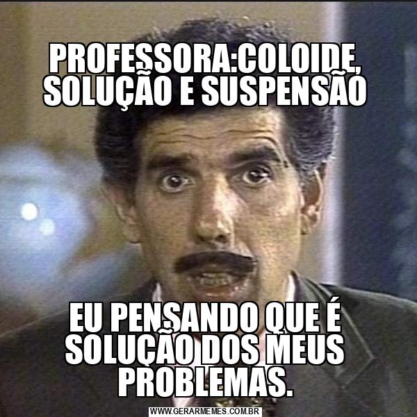 PROFESSORA:COLOIDE, SOLUÇÃO E SUSPENSÃO EU PENSANDO QUE É SOLUÇÃO DOS MEUS PROBLEMAS.