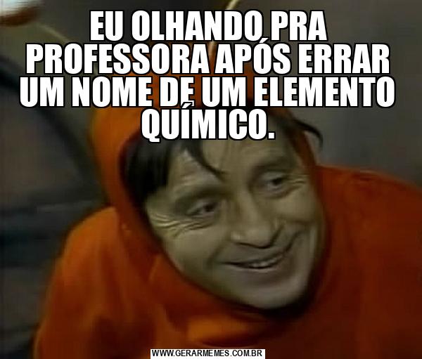 EU OLHANDO PRA PROFESSORA APÓS ERRAR UM NOME DE UM ELEMENTO QUÍMICO.