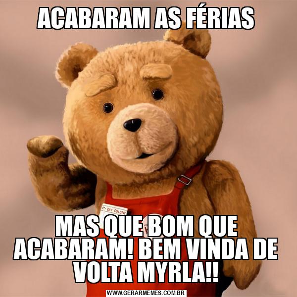 ACABARAM AS FÉRIAS MAS QUE BOM QUE ACABARAM! BEM VINDA DE VOLTA MYRLA!!