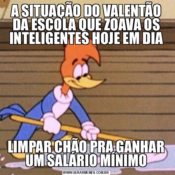 A SITUAÇÃO DO VALENTÃO DA ESCOLA QUE ZOAVA OS INTELIGENTES HOJE EM DIA LIMPAR CHÃO PRA GANHAR UM SALÁRIO MÍNIMO