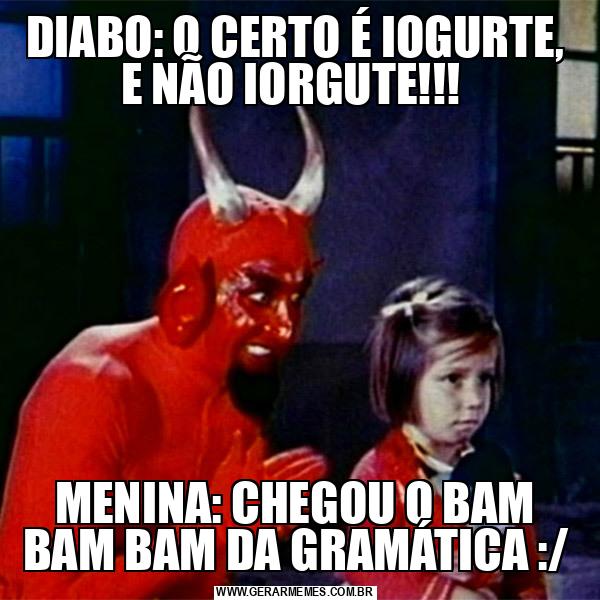DIABO: O CERTO É IOGURTE, E NÃO IORGUTE!!! MENINA: CHEGOU O BAM BAM BAM DA GRAMÁTICA :/