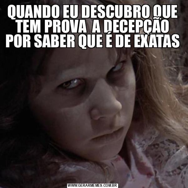QUANDO EU DESCUBRO QUE TEM PROVA A DECEPÇÃO POR SABER QUE É DE EXATAS