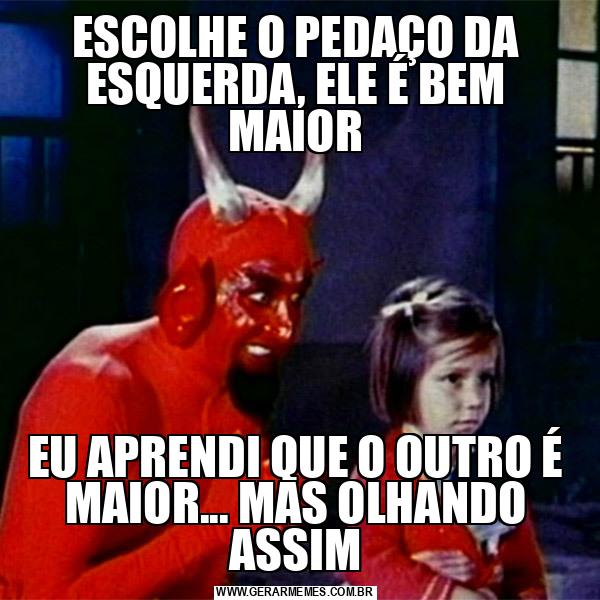 ESCOLHE O PEDAÇO DA ESQUERDA, ELE É BEM MAIOR EU APRENDI QUE O OUTRO É MAIOR... MAS OLHANDO ASSIM