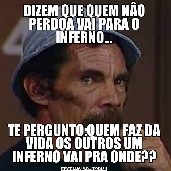 DIZEM QUE QUEM NÂO PERDOA VAI PARA O INFERNO... TE PERGUNTO:QUEM FAZ DA VIDA OS OUTROS UM INFERNO VAI PRA ONDE??