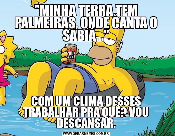 "MINHA TERRA TEM PALMEIRAS, ONDE CANTA O SABIÁ..." COM UM CLIMA DESSES TRABALHAR PRA QUÊ? VOU DESCANSAR.
