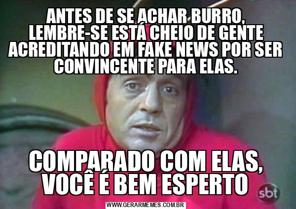 ANTES DE SE ACHAR BURRO, LEMBRE-SE ESTÁ CHEIO DE GENTE ACREDITANDO EM FAKE NEWS POR SER CONVINCENTE PARA ELAS. COMPARADO COM ELAS, VOCÊ É BEM ESPERTO