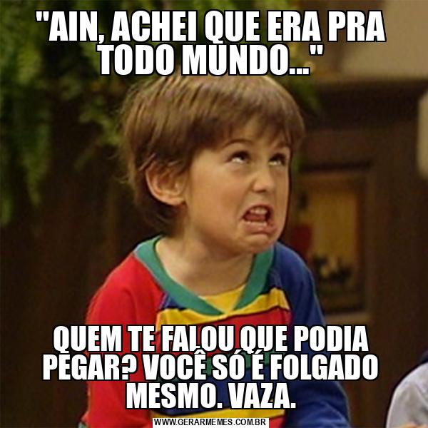"AIN, ACHEI QUE ERA PRA TODO MUNDO..." QUEM TE FALOU QUE PODIA PEGAR? VOCÊ SÓ É FOLGADO MESMO. VAZA.