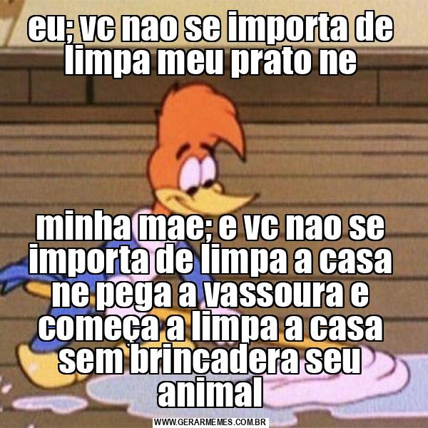 eu; vc nao se importa de limpa meu prato ne minha mae; e vc nao se importa de limpa a casa ne pega a vassoura e começa a limpa a casa sem brincadera seu animal