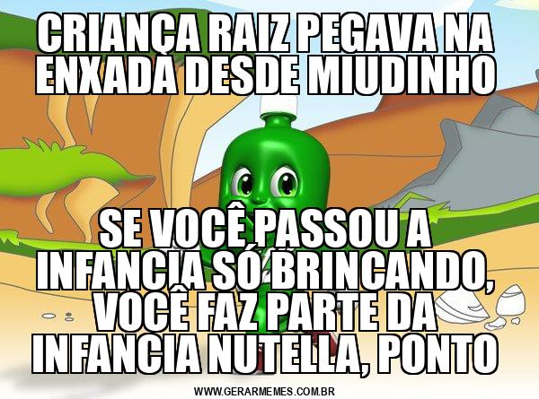 CRIANÇA RAIZ PEGAVA NA ENXADA DESDE MIUDINHO SE VOCÊ PASSOU A INFANCIA SÓ BRINCANDO, VOCÊ FAZ PARTE DA INFANCIA NUTELLA, PONTO