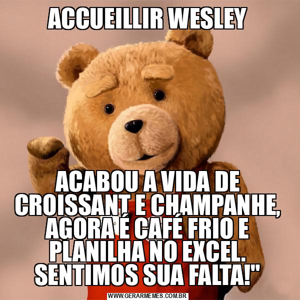 ACCUEILLIR WESLEY ACABOU A VIDA DE CROISSANT E CHAMPANHE, AGORA É CAFÉ FRIO E PLANILHA NO EXCEL. SENTIMOS SUA FALTA!"