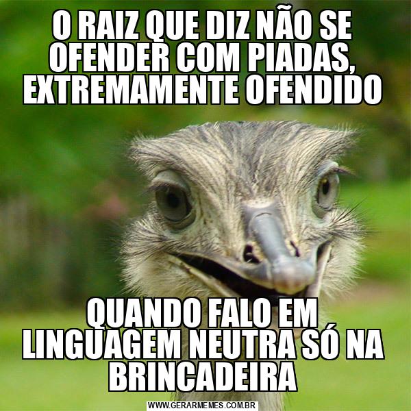 O RAIZ QUE DIZ NÃO SE OFENDER COM PIADAS, EXTREMAMENTE OFENDIDO QUANDO FALO EM LINGUAGEM NEUTRA SÓ NA BRINCADEIRA