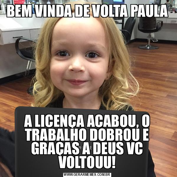 BEM VINDA DE VOLTA PAULA A LICENÇA ACABOU, O TRABALHO DOBROU E GRAÇAS A DEUS VC VOLTOUU!