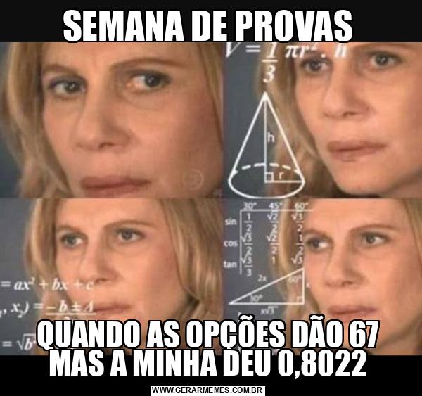 SEMANA DE PROVAS QUANDO AS OPÇÕES DÃO 67 MAS A MINHA DEU 0,8022