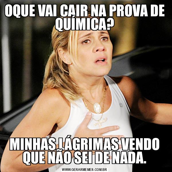 OQUE VAI CAIR NA PROVA DE QUÍMICA? MINHAS LÁGRIMAS VENDO QUE NÃO SEI DE NADA.