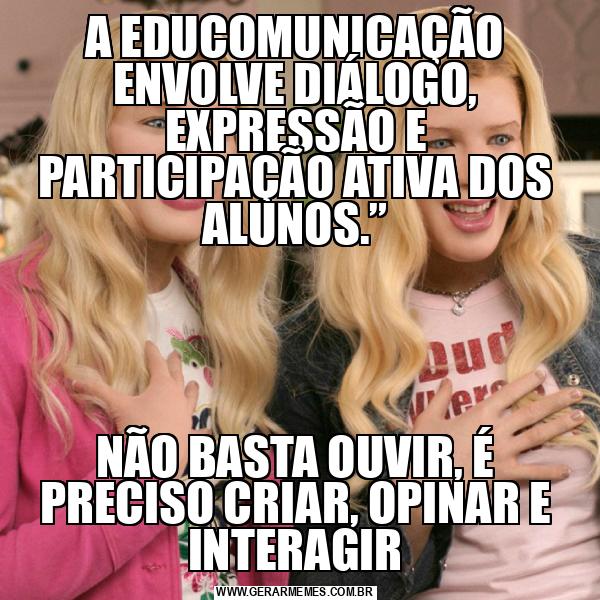 A EDUCOMUNICAÇÃO ENVOLVE DIÁLOGO, EXPRESSÃO E PARTICIPAÇÃO ATIVA DOS ALUNOS.” NÃO BASTA OUVIR, É PRECISO CRIAR, OPINAR E INTERAGIR