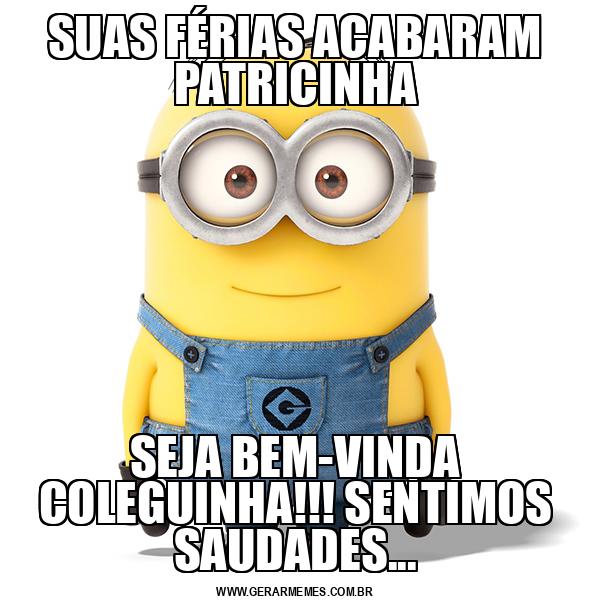 SUAS FÉRIAS ACABARAM PATRICINHA SEJA BEM-VINDA COLEGUINHA!!! SENTIMOS SAUDADES...