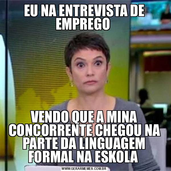 EU NA ENTREVISTA DE EMPREGO VENDO QUE A MINA CONCORRENTE CHEGOU NA PARTE DA LINGUAGEM FORMAL NA ESKOLA