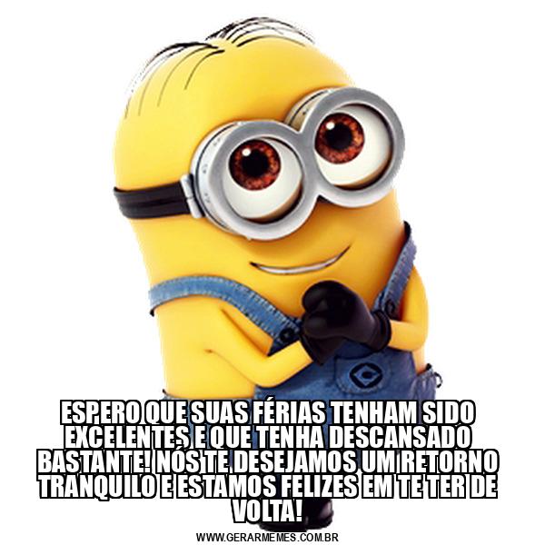 ESPERO QUE SUAS FÉRIAS TENHAM SIDO EXCELENTES E QUE TENHA DESCANSADO BASTANTE! NÓS TE DESEJAMOS UM RETORNO TRANQUILO E ESTAMOS FELIZES EM TE TER DE VOLTA!