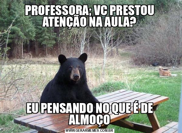 PROFESSORA; VC PRESTOU ATENÇÃO NA AULA? EU PENSANDO NO QUE É DE ALMOÇO