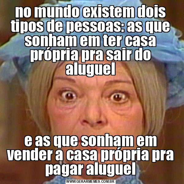 no mundo existem dois tipos de pessoas: as que sonham em ter casa própria pra sair do aluguel e as que sonham em vender a casa própria pra pagar aluguel
