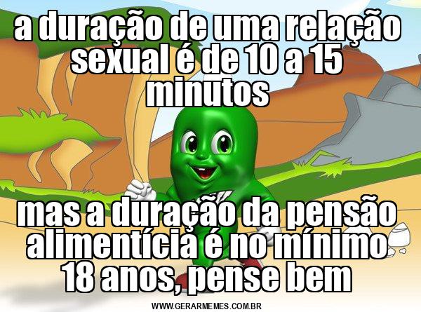 a duração de uma relação sexual é de 10 a 15 minutos mas a duração da pensão alimentícia é no mínimo 18 anos, pense bem