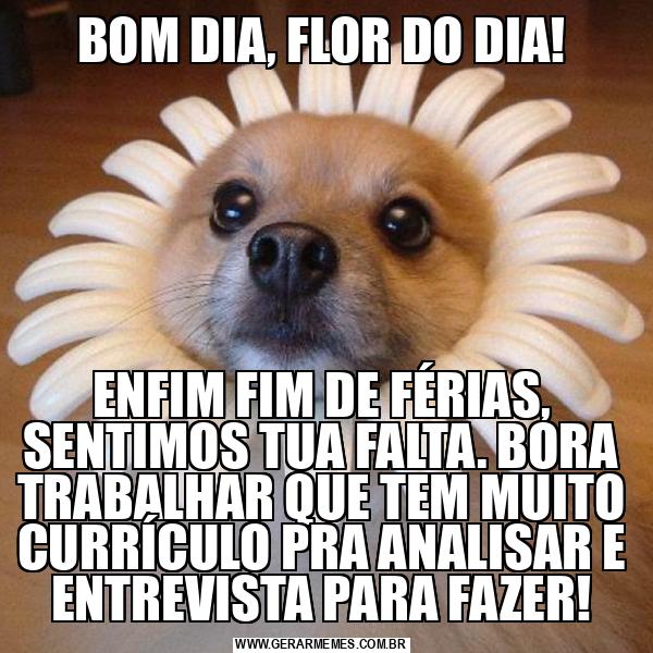 BOM DIA, FLOR DO DIA! ENFIM FIM DE FÉRIAS, SENTIMOS TUA FALTA. BORA TRABALHAR QUE TEM MUITO CURRÍCULO PRA ANALISAR E ENTREVISTA PARA FAZER!