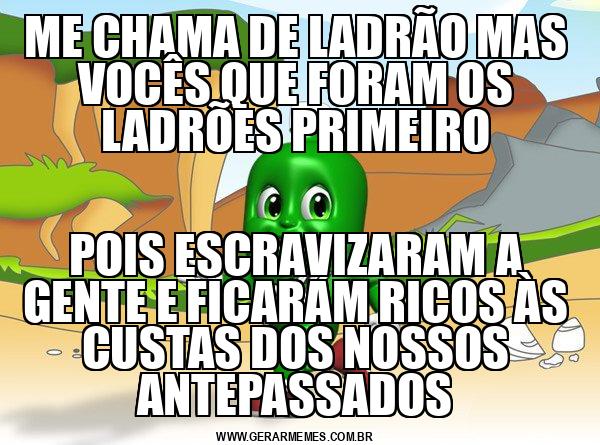 ME CHAMA DE LADRÃO MAS VOCÊS QUE FORAM OS LADRÕES PRIMEIRO POIS ESCRAVIZARAM A GENTE E FICARAM RICOS ÀS CUSTAS DOS NOSSOS ANTEPASSADOS