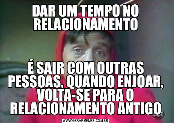 DAR UM TEMPO NO RELACIONAMENTO É SAIR COM OUTRAS PESSOAS, QUANDO ENJOAR, VOLTA-SE PARA O RELACIONAMENTO ANTIGO