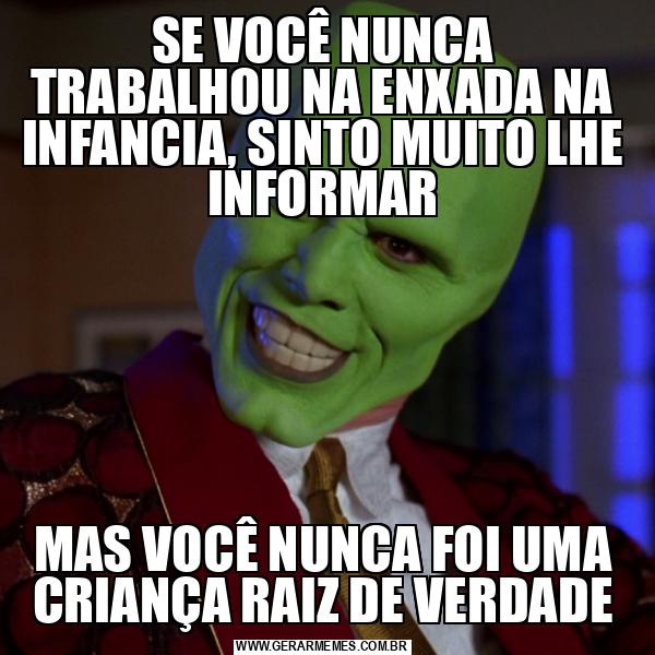SE VOCÊ NUNCA TRABALHOU NA ENXADA NA INFANCIA, SINTO MUITO LHE INFORMAR MAS VOCÊ NUNCA FOI UMA CRIANÇA RAIZ DE VERDADE