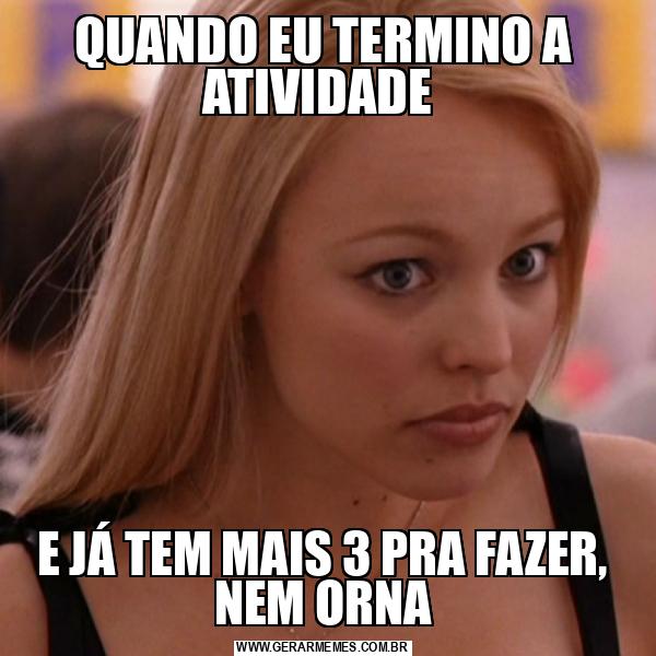 QUANDO EU TERMINO A ATIVIDADE E JÁ TEM MAIS 3 PRA FAZER, NEM ORNA