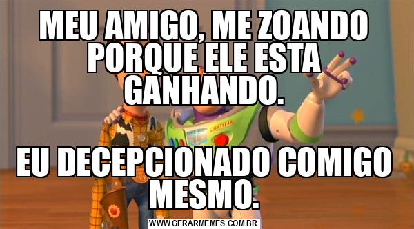 MEU AMIGO, ME ZOANDO PORQUE ELE ESTA GANHANDO. EU DECEPCIONADO COMIGO MESMO.