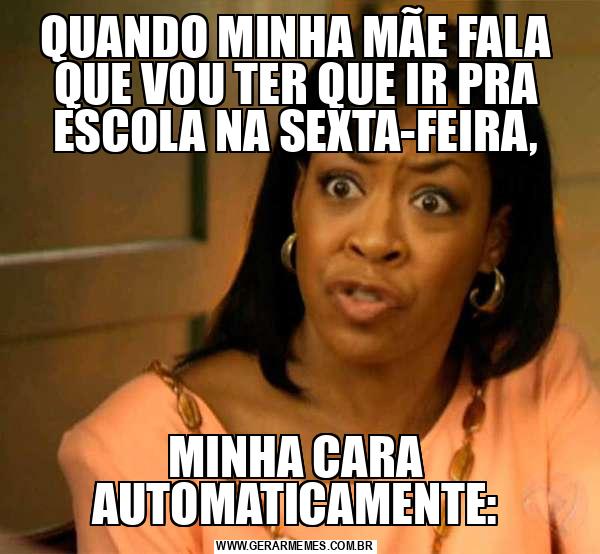 QUANDO MINHA MÃE FALA QUE VOU TER QUE IR PRA ESCOLA NA SEXTA-FEIRA, MINHA CARA AUTOMATICAMENTE: