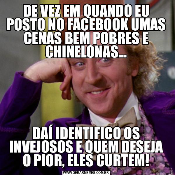 DE VEZ EM QUANDO EU POSTO NO FACEBOOK UMAS CENAS BEM POBRES E CHINELONAS... DAÍ IDENTIFICO OS INVEJOSOS E QUEM DESEJA O PIOR, ELES CURTEM!