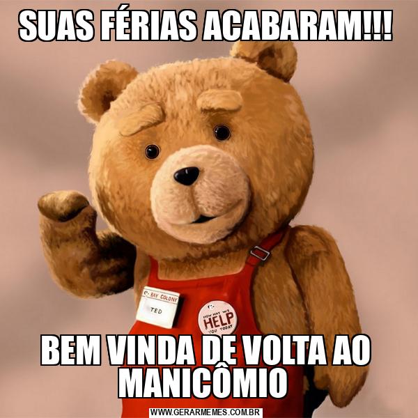 SUAS FÉRIAS ACABARAM!!! BEM VINDA DE VOLTA AO MANICÔMIO